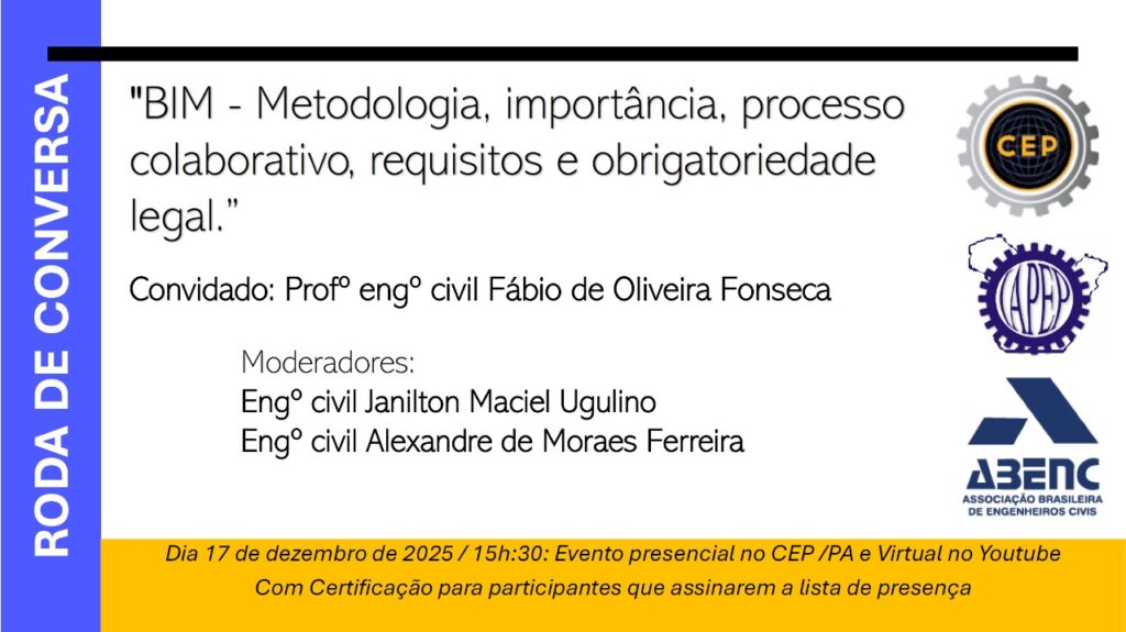 Roda de conversa: BIM – Metodologia, importância, processo colaborativo, requisitos e obrigatoriedade legal.